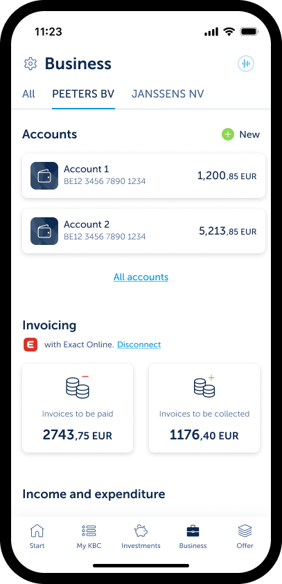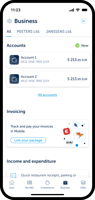 Business owners with a KBC Brussels Business PRO Current Account have access to ‘Business’, which you can now find in the main menu of the app.