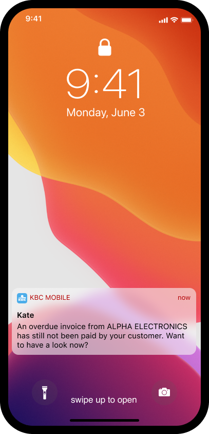 * You’ll receive notifications from Kate only if you’ve enabled ‘Extra convenience’ in KBC Brussels Mobile. To do that, just ask Kate to ‘Activate ‘Extra convenience’.’