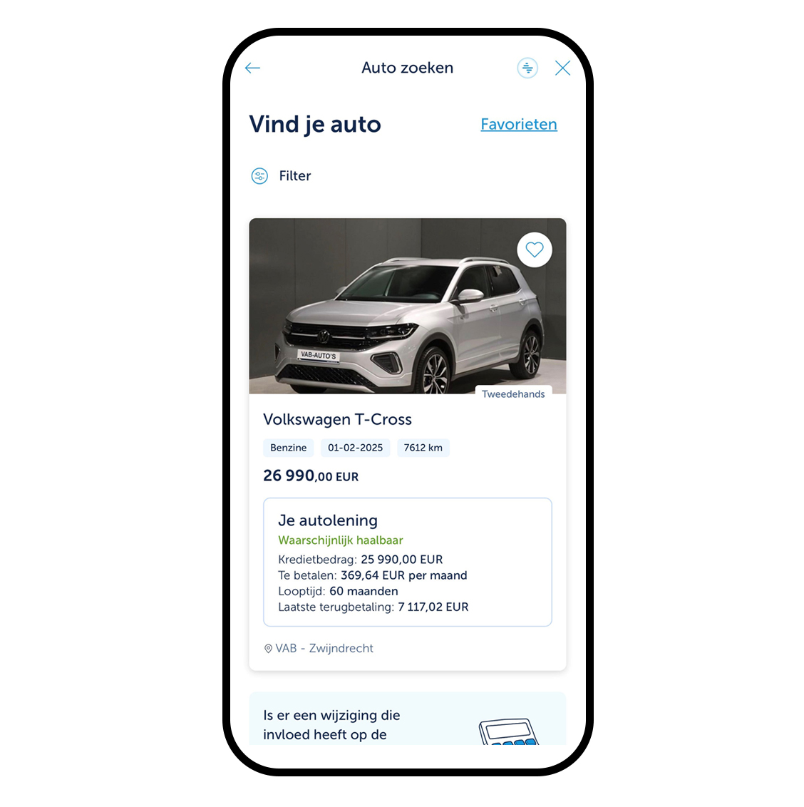 Vind je volgende auto in KBC Brussels Mobile