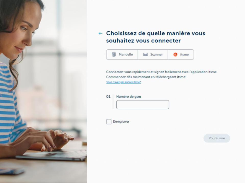 Vous avez aussi la possibilité de vous enregistrer la toute première fois dans KBC Brussels Touch (sur votre ordinateur) au moyen de l'app itsme®.